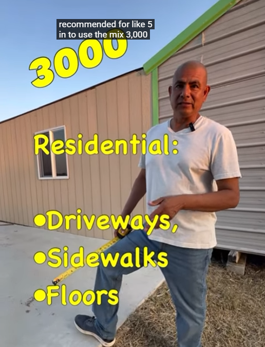 - PSI 3500: Esta mezcla es un poco más fuerte y funciona bien para pisos residenciales o áreas de tráfico ligero. Debe usar un grosor de 4 a 6 pulgadas.